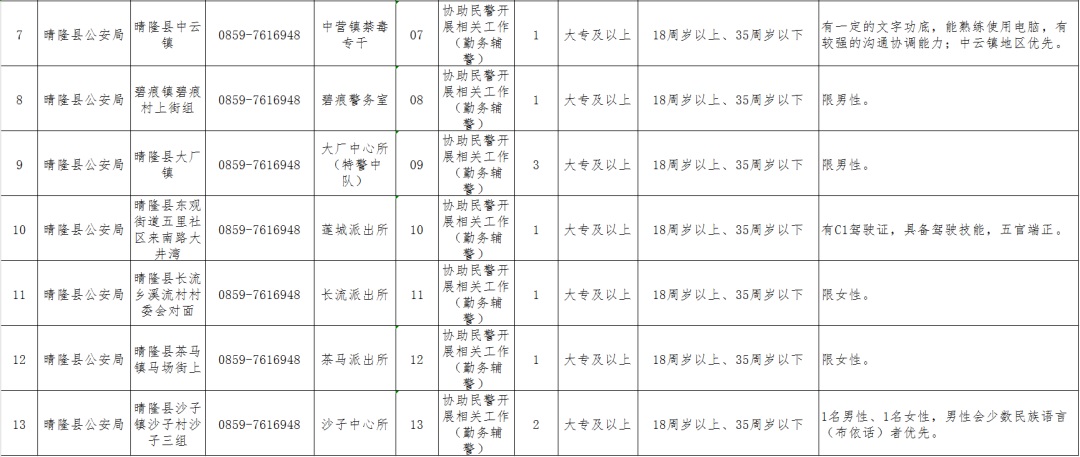 2023黔西南晴隆縣公安局關(guān)于面向社會公開招聘34名警務(wù)輔助職位表下載