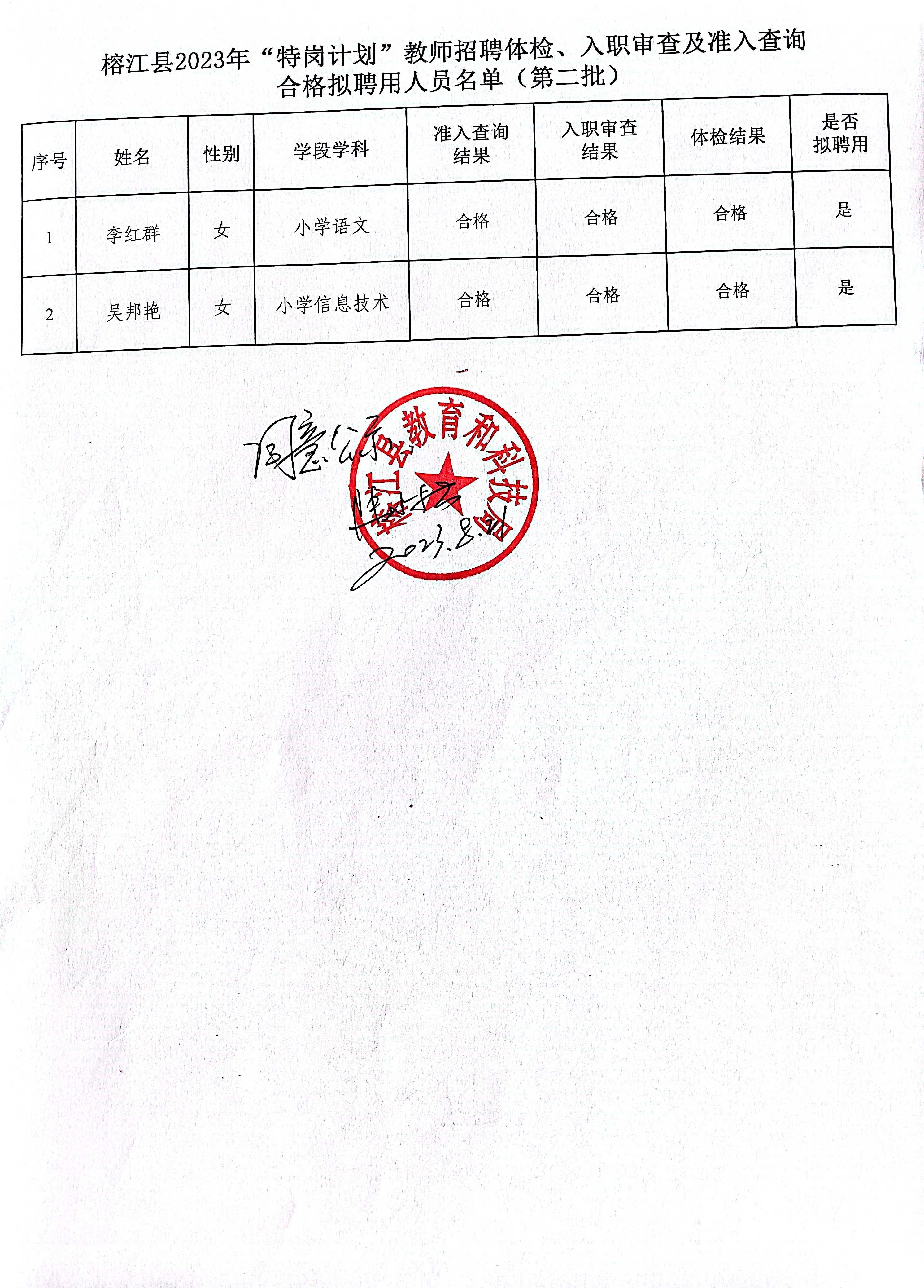 原文標(biāo)題:榕江縣2023年“特崗計(jì)劃“教師招聘體檢、入職審查及準(zhǔn)入查詢合格擬聘用人員名單公示(第二批2人)